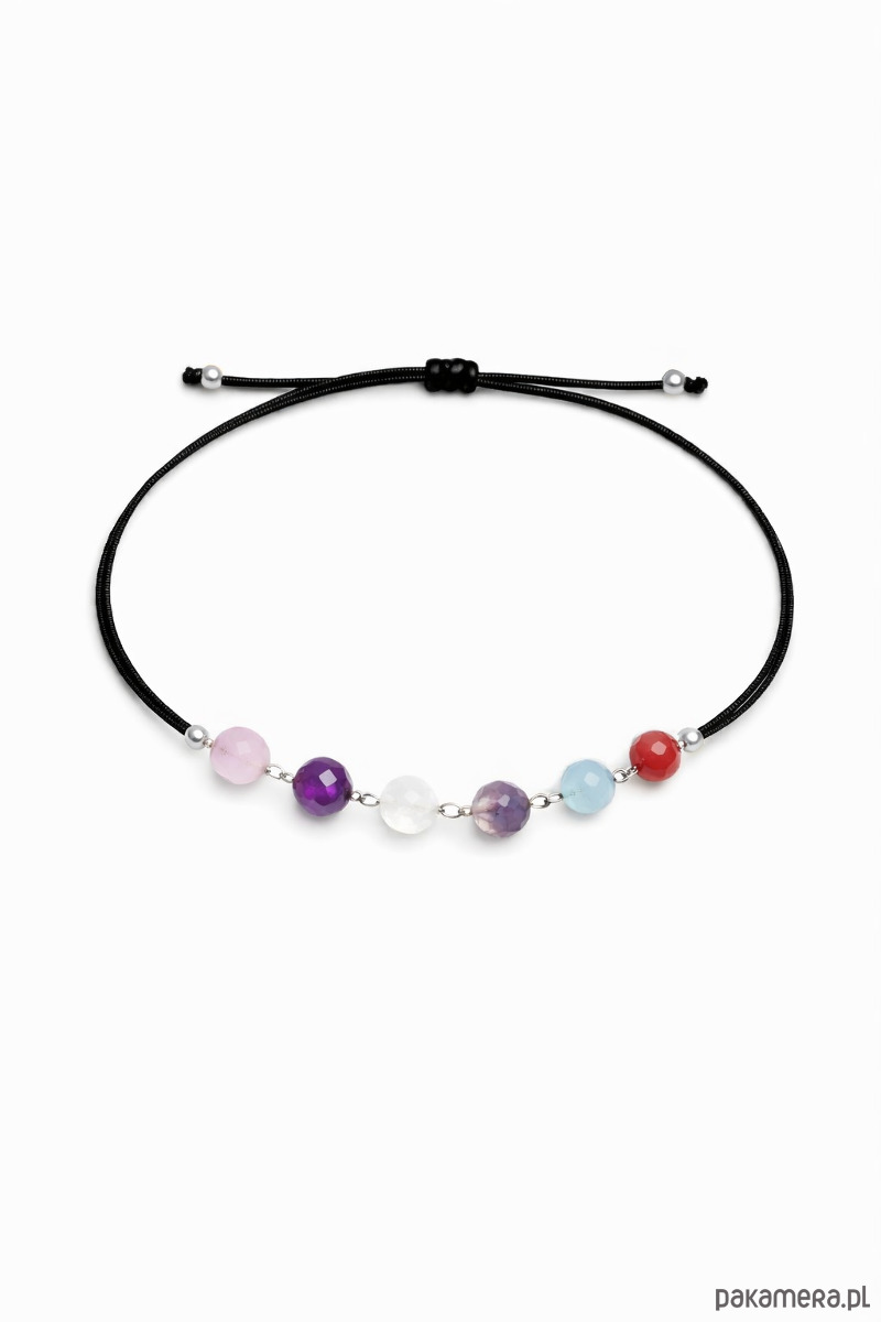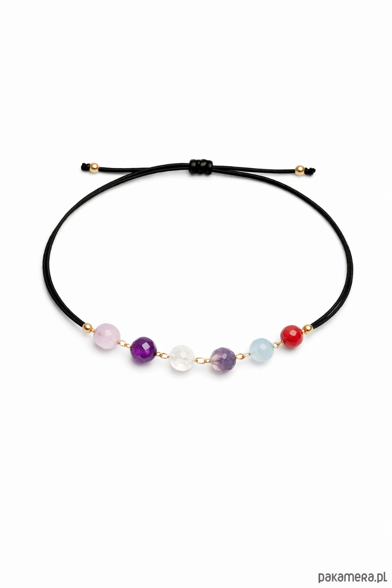 Bransoletka została osadzona na trwałej nici z regulowanym przesuwanym zapięciem, dzięki czemu łatwo dopasowuje się do nadgarstka. Kamienie są fasetowane, subtelnie odbijają światło i zachowują naturalny charakter.