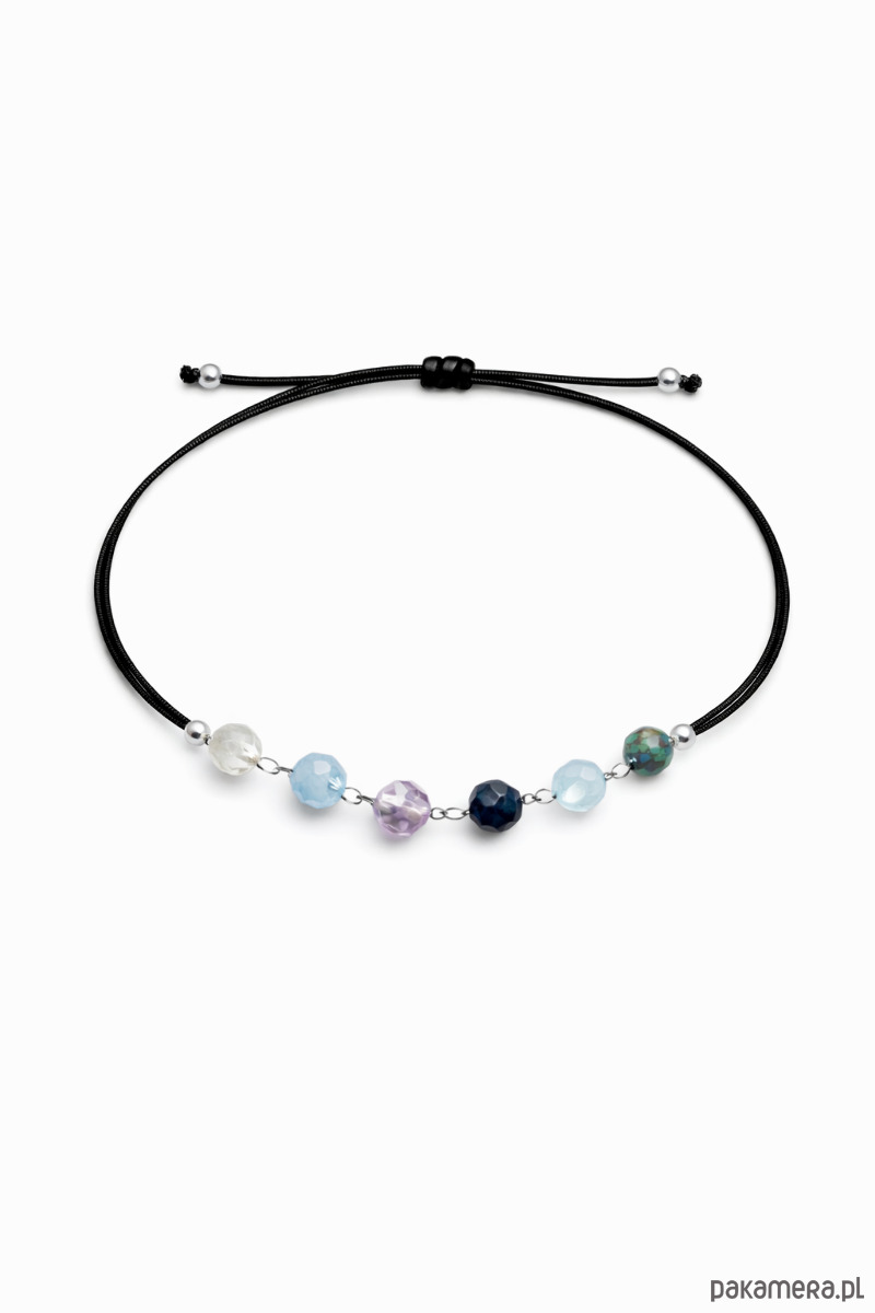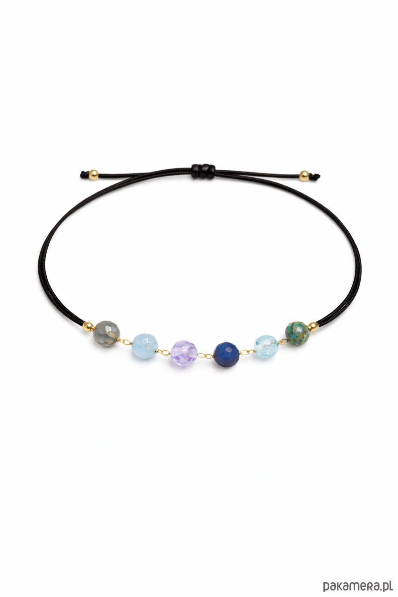 Bransoletka została osadzona na trwałej nici z regulowanym przesuwanym zapięciem, dzięki czemu łatwo dopasowuje się do nadgarstka. Kamienie są fasetowane, subtelnie odbijają światło i zachowują naturalny charakter.