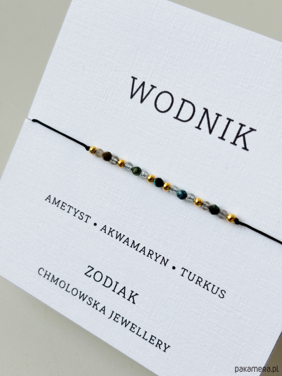 Bransoletka stworzona została z myślą o niezależnych, otwartych i pełnych wizji Wodnikach, które pragną żyć w zgodzie ze sobą, czerpiąc inspiracje z wolności i autentyczności. To połączenie kamieni wspierających wewnętrzny spokój, kreatywność i duchową harmonię.