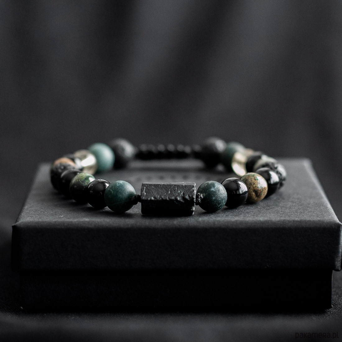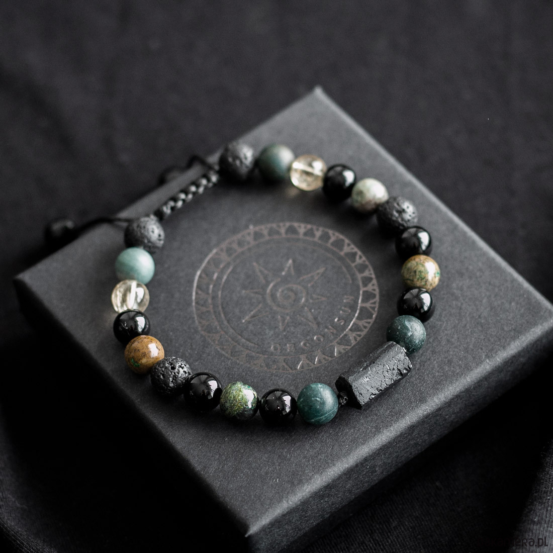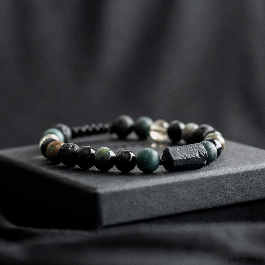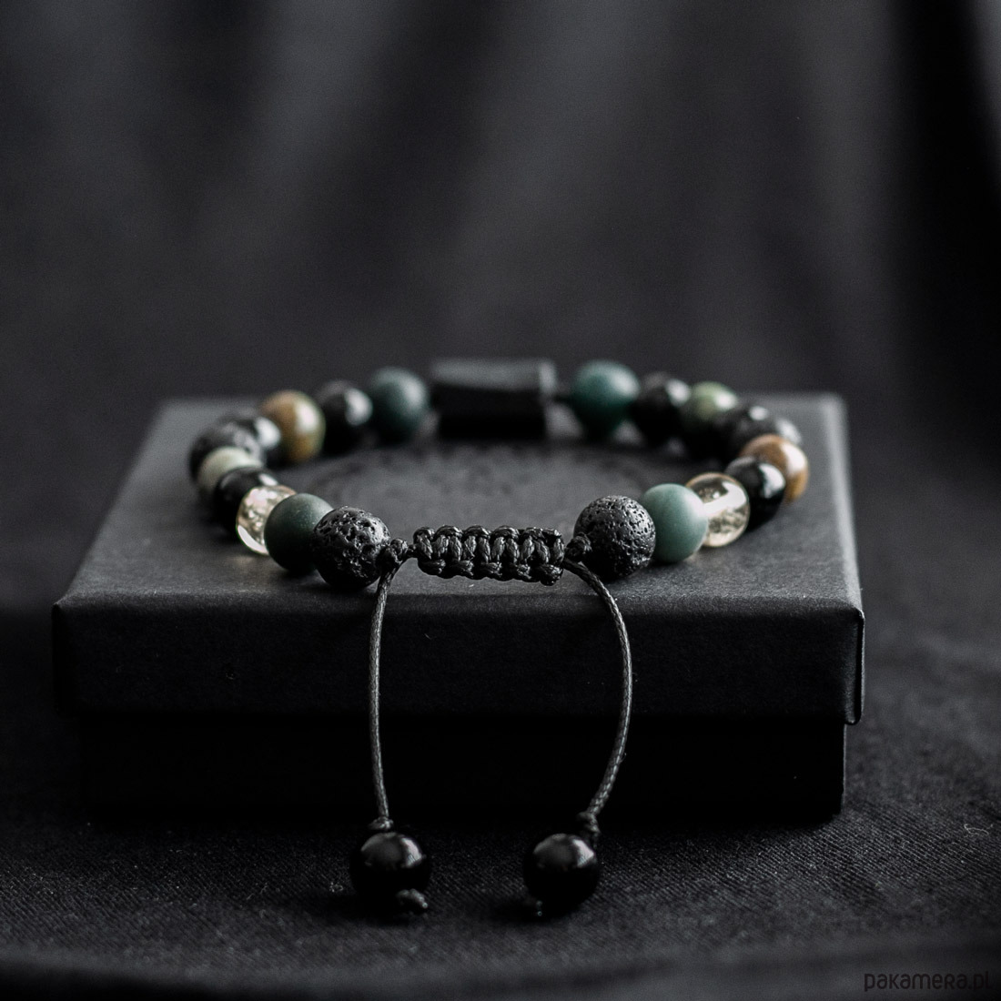 Pakowanie: Bransoletka jest zapakowana w ozdobne pudełko w kolorze czarnym wraz z opisem kamieni.