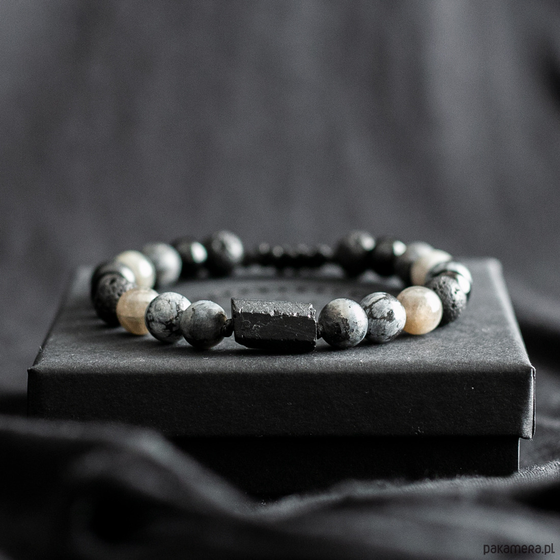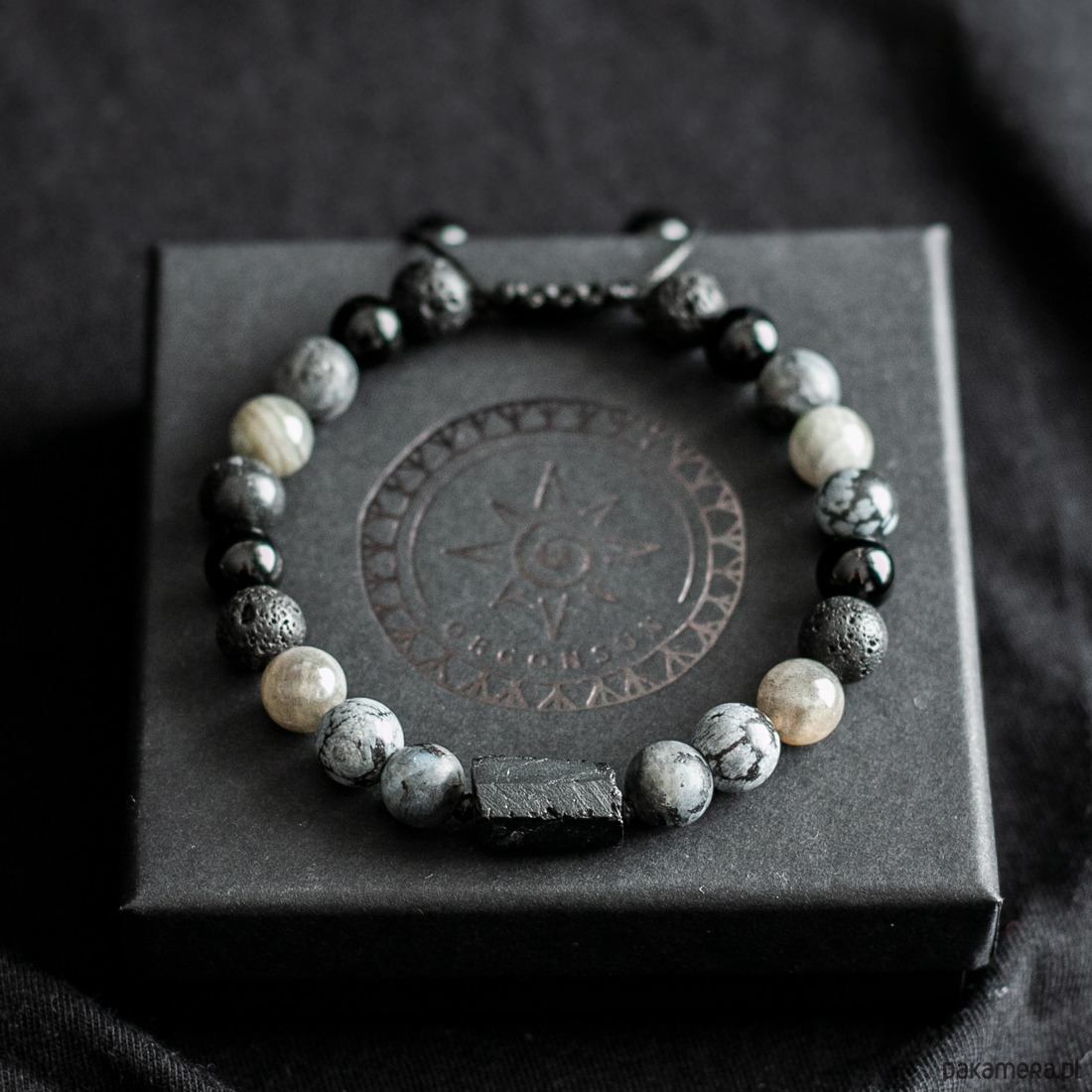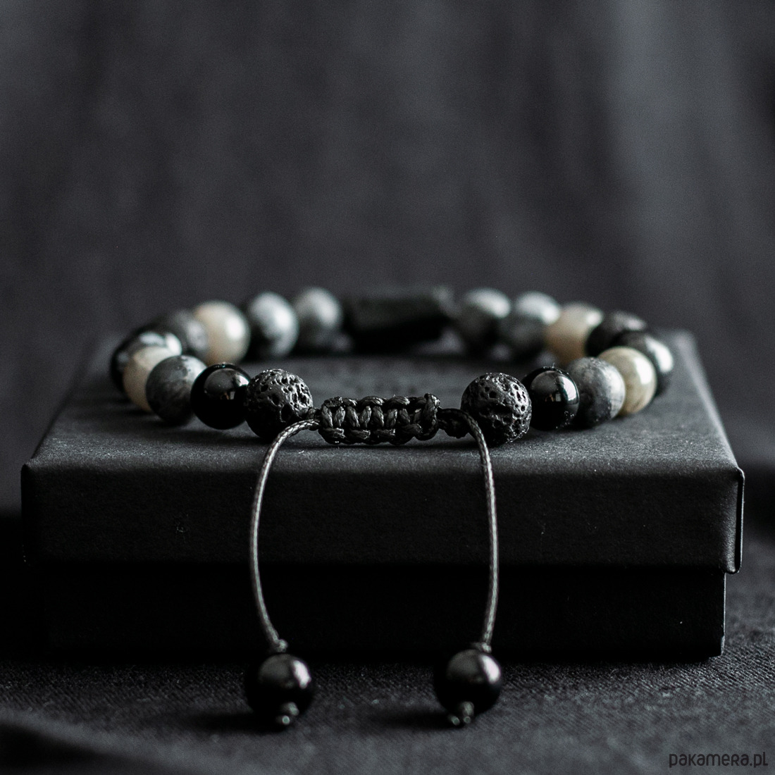 Pakowanie: Bransoletka jest zapakowana w ozdobne pudełko w kolorze czarnym wraz z opisem kamieni.