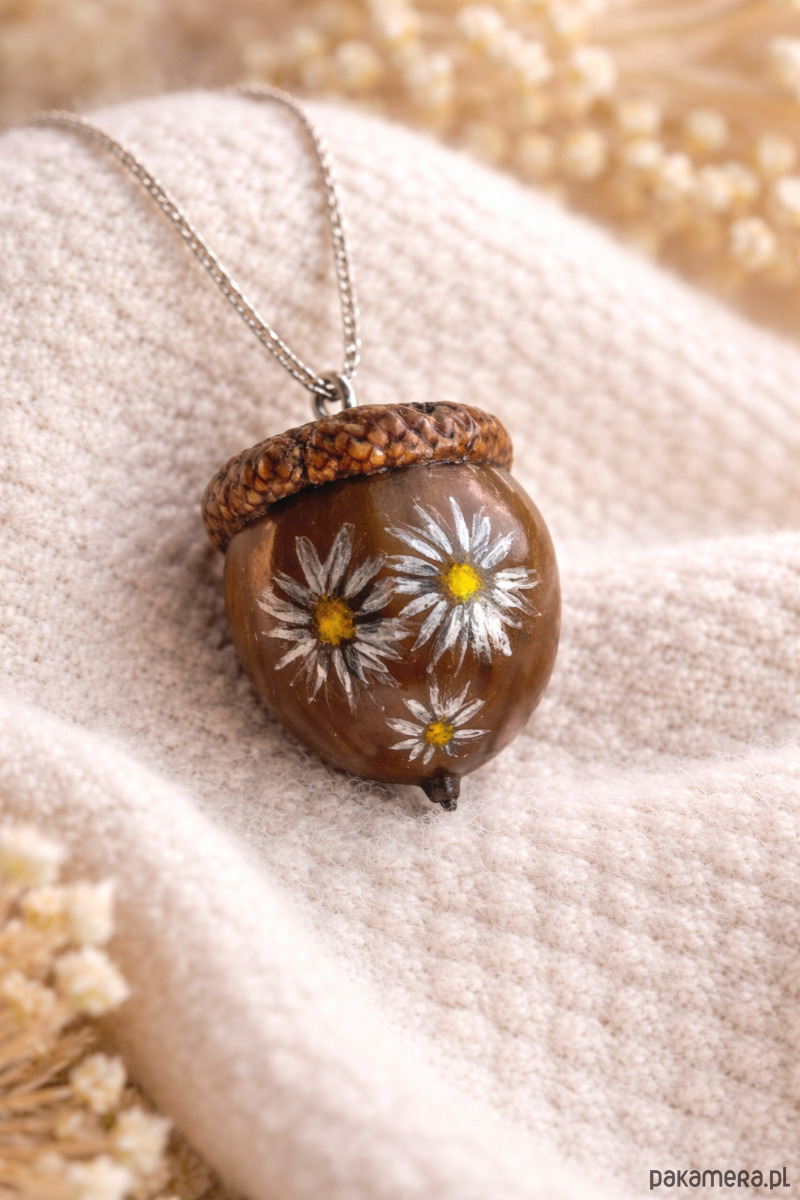 "Żołądź ze Stokrotkami" - Wisiorek, Naszyjnik, Zawieszka