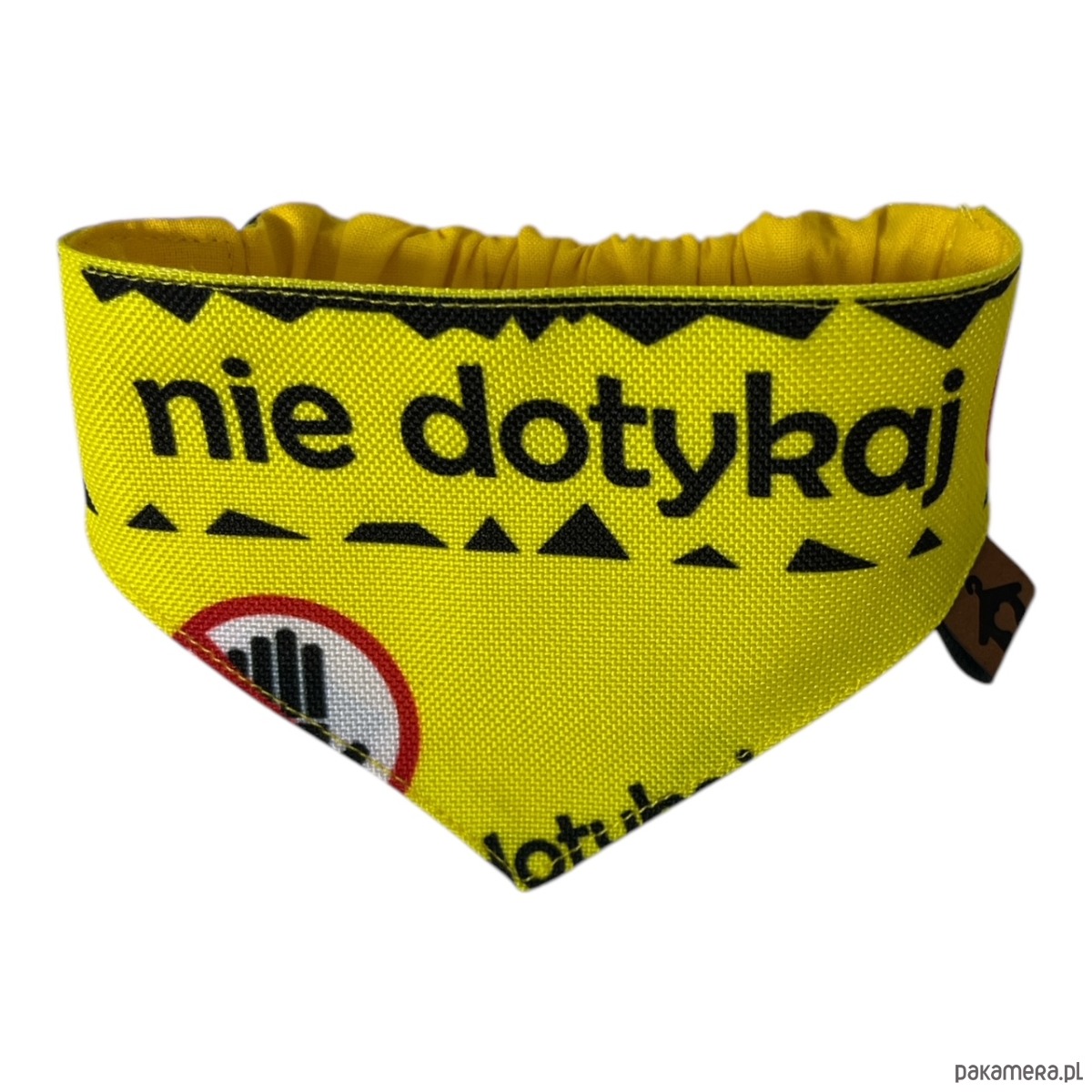 Żółta bandana, chustka, apaszka dla psa Nie dotykaj