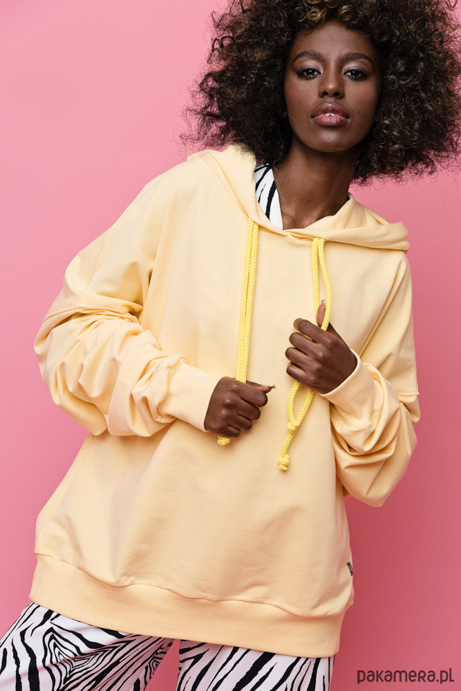 Bluza mocno oversizowa z bardzo długimi rękawami (jeśli chcesz mieć ją bardziej dopasowaną wymierz rozmiar XS) krótka z kapturem