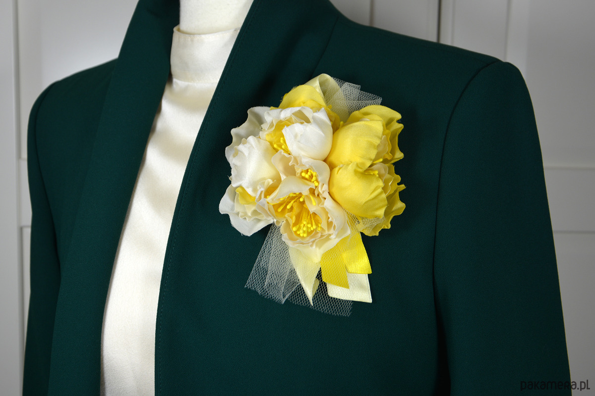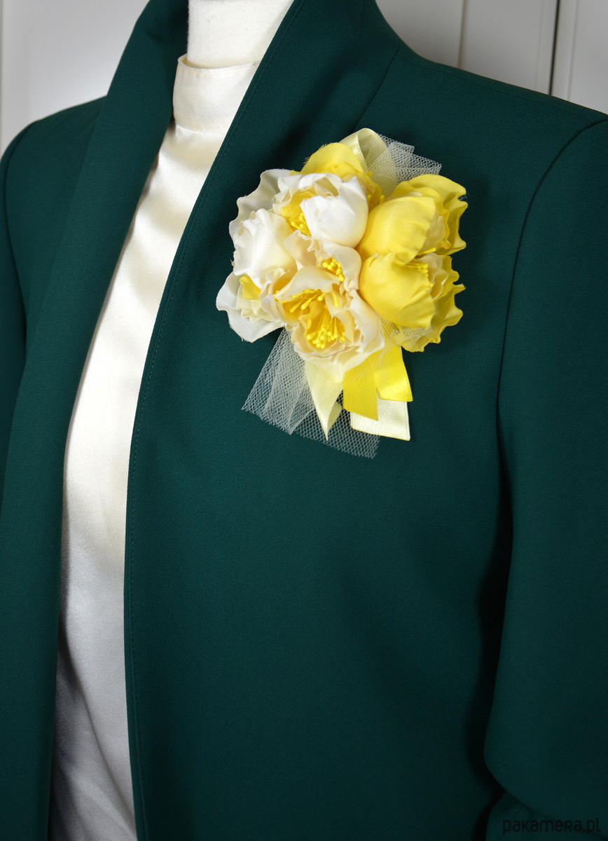 Unikatowa broszka z żółtymi jedwabnymi kwiatami