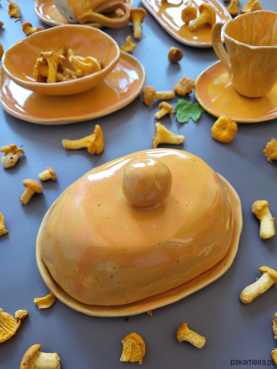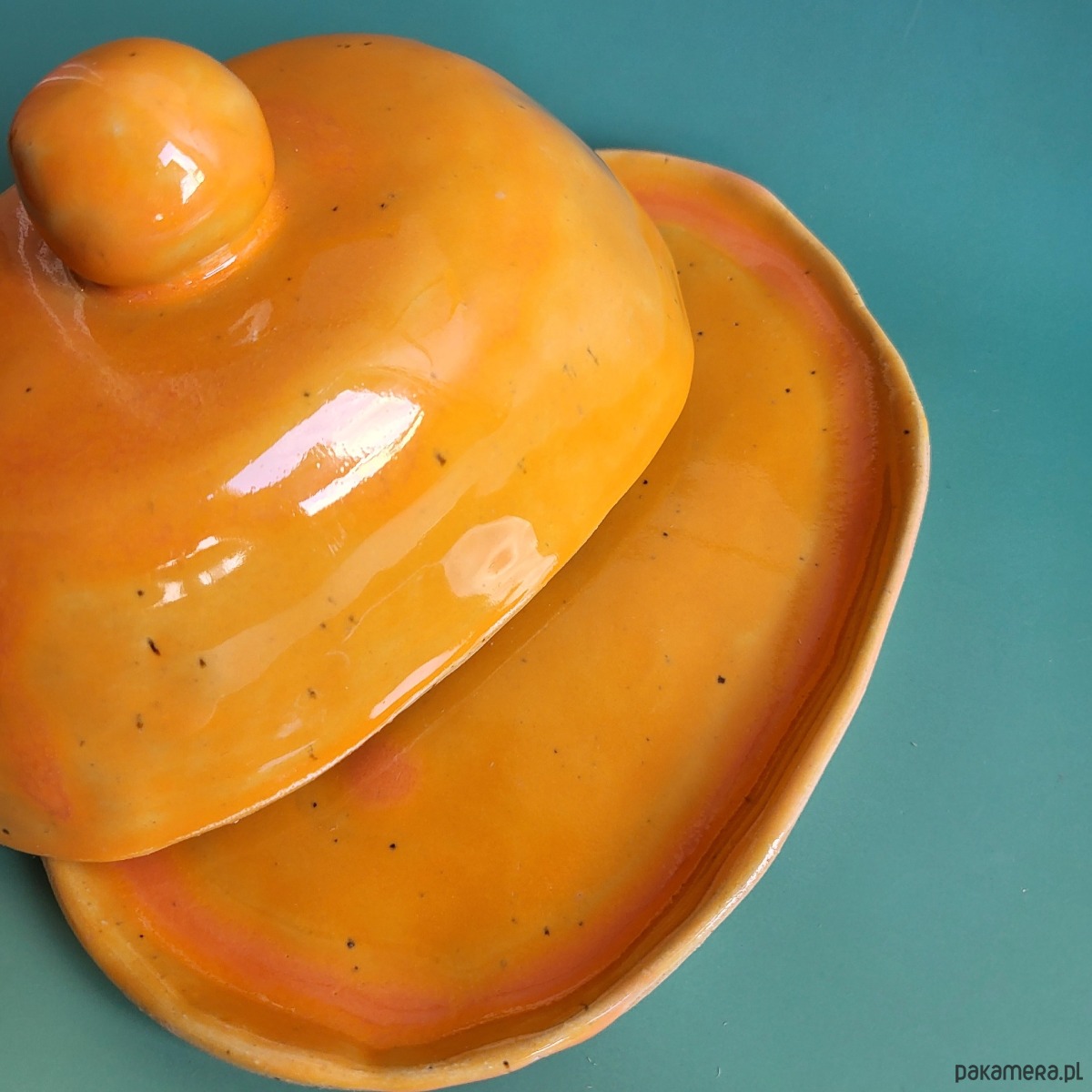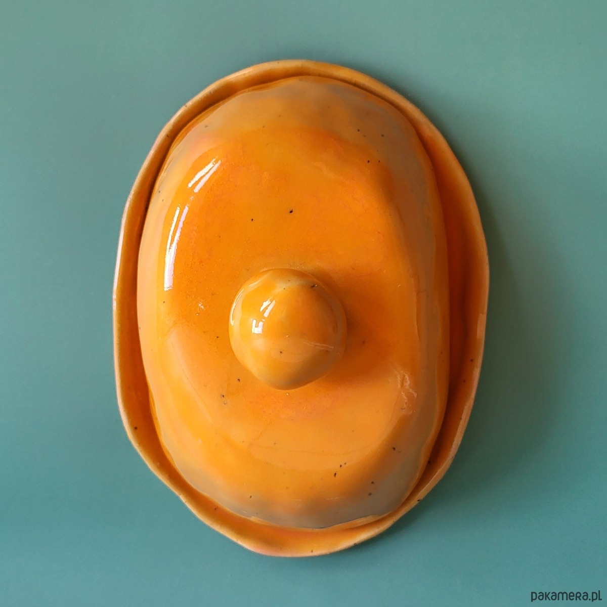 Ręcznie robiona ceramika do codziennego użytku — żółta maselniczka ceramiczna Kurki