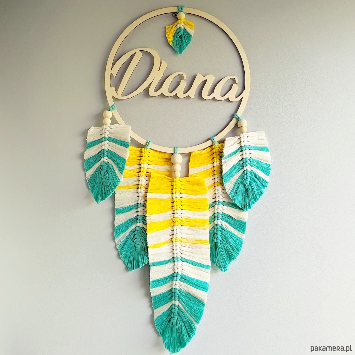 Napis na łapaczu może być dowolny: imię, metryczka urodzenia, data ślubu, kilka imion, nazwisko, napisy "Home", "Love" - co tylko zapragniesz :) W przypadku gdy napis składa się z kilku wyrazów, każdy wyraz umieszczamy w osobnej linijce (zalecamy do 5u słów).