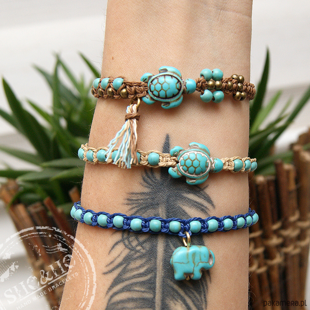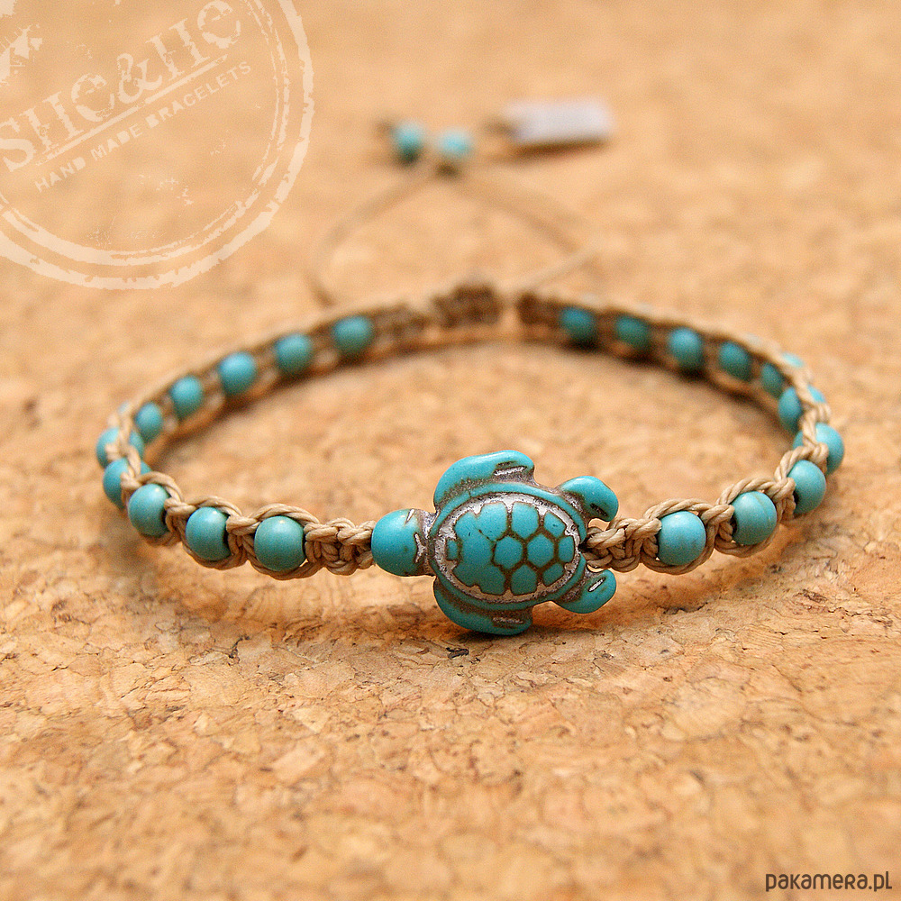 Bransoletka wykonana z bardzo wysokiej jakosci sznurka który mozna nosic rownież do kapieli nie martwiąc się o zniszczenia :) Przetestowane ;) nosimy nasze bransoletki latami :) Koraliki z howlitu. Regulowany rozmiar od 17 do 25 cm Pamiętaj bransoletka musi przejsc przez dłoń. Dlatego jeżeli masz nadgarstek od 19 cm w zwyż ten rozmiar nie bedzie dla Ciebie dobry.