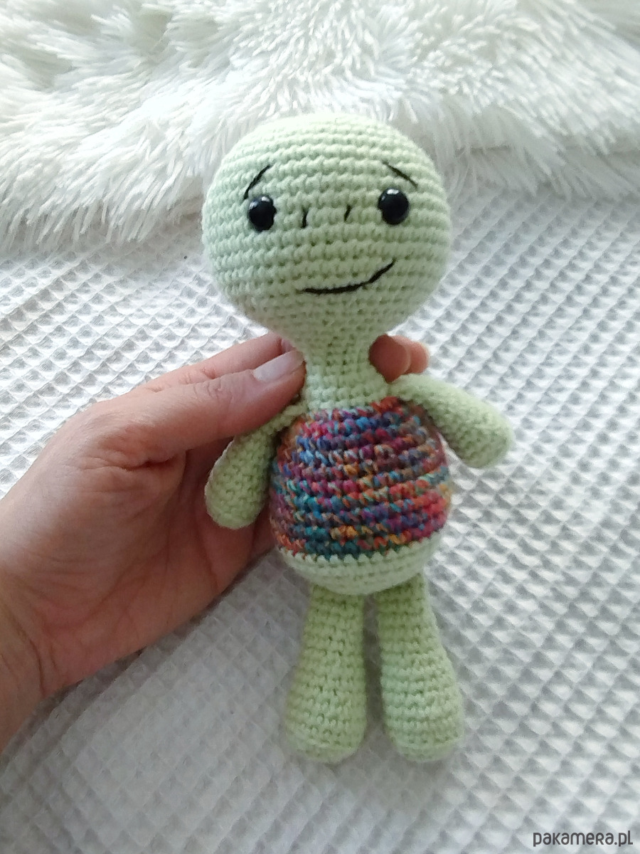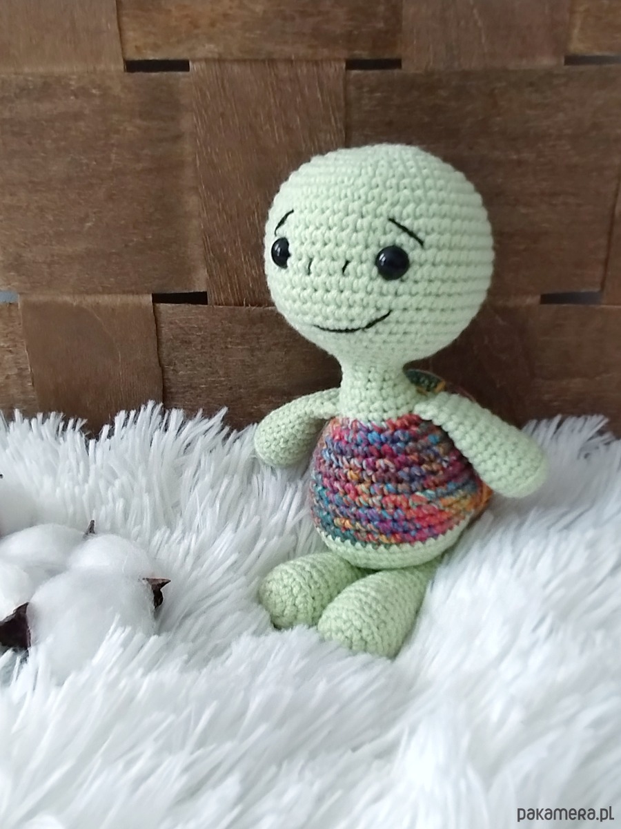 Aby zabawka była bezpieczna dla dziecka, musimy ją uprać. Dlatego też wybrałam włóczkę, która jest mieszanką bawełny i akrylu. Będzie bezproblemowo przechodzić proces prania nie tracąc na wyglądzie. Jak zabawkę uprać dowiesz się z instrukcji, którą zamieszczę do zabawki.