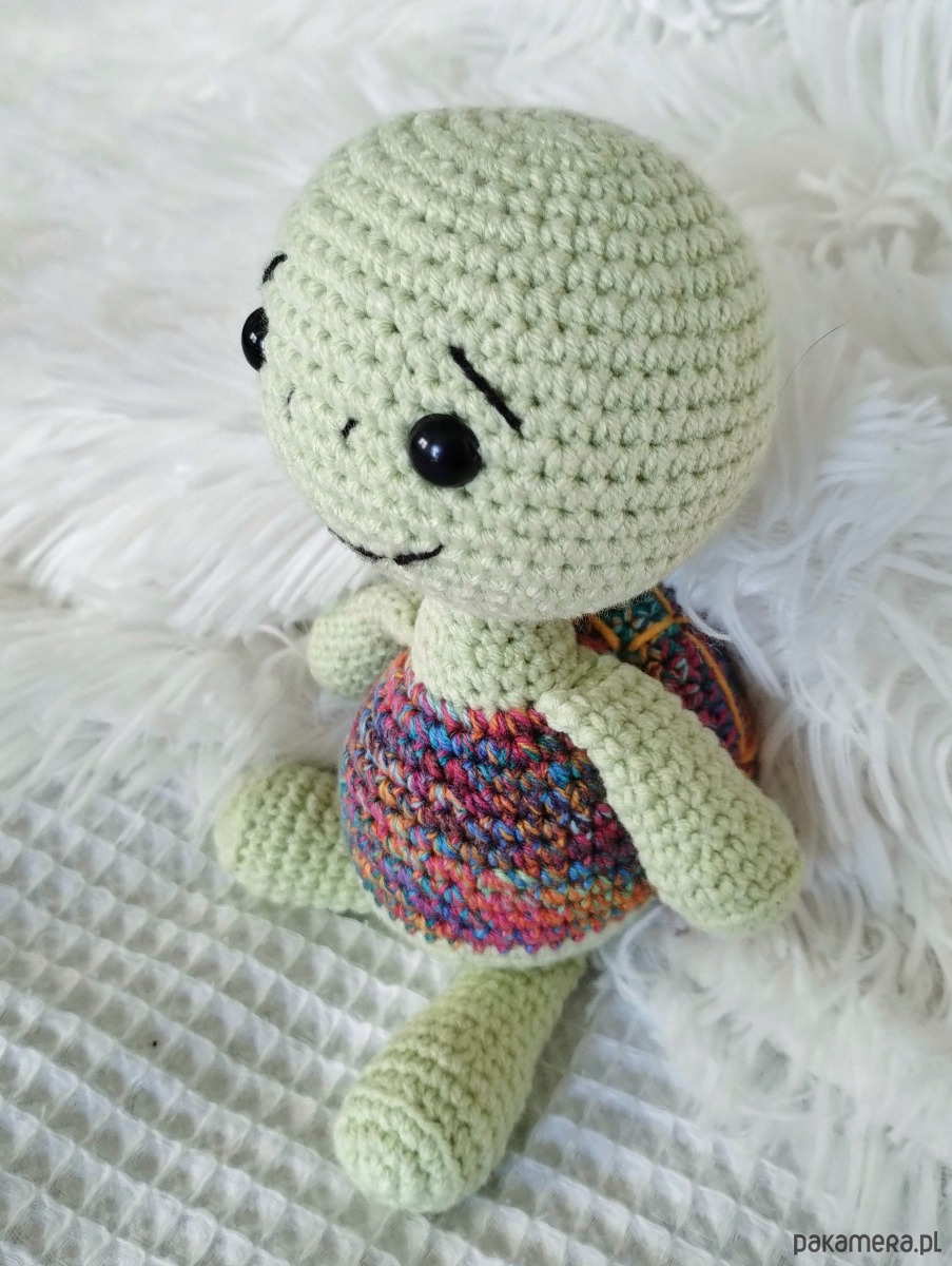 A zabawka to żółw Kostek. Ma prawie 19 cm wzrostu, zielone ciałko, łysą głowę i kolorową skorupę - jak na żółwika przystało Będzie doskonałym towarzyszem każdej zabawy.