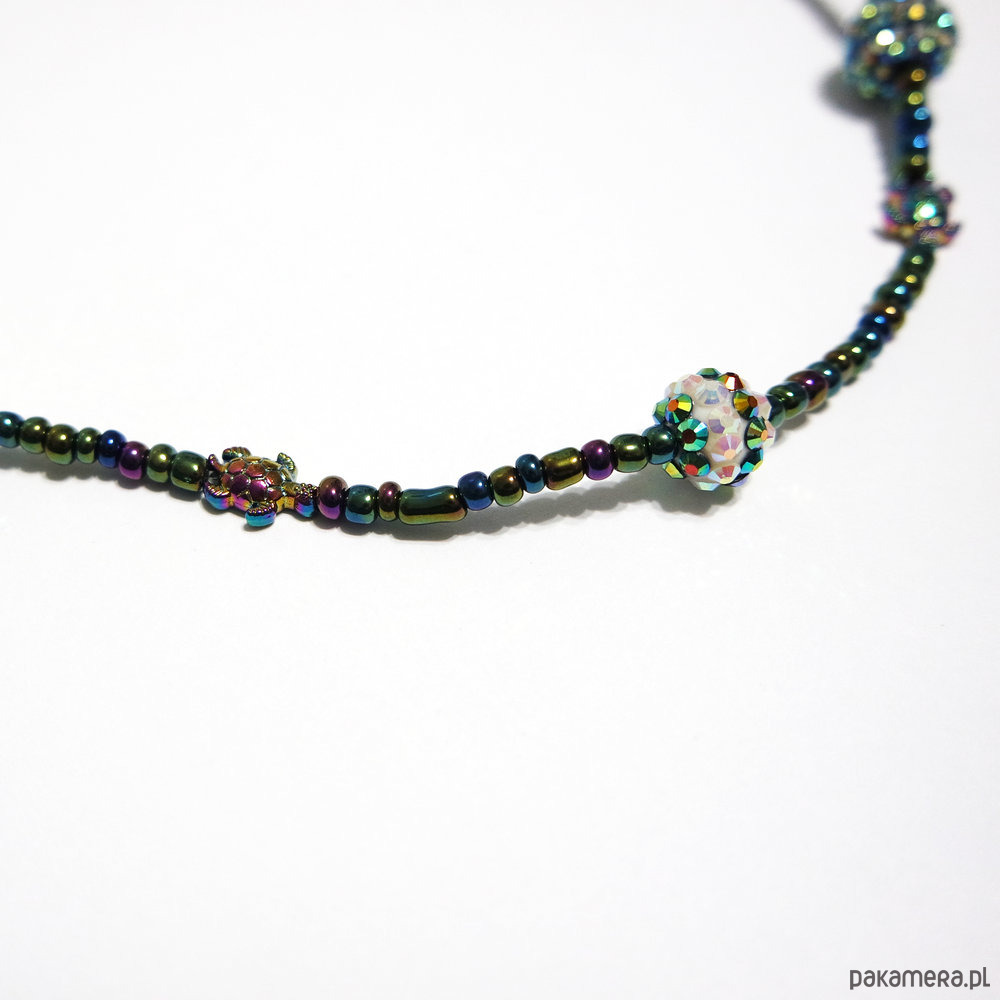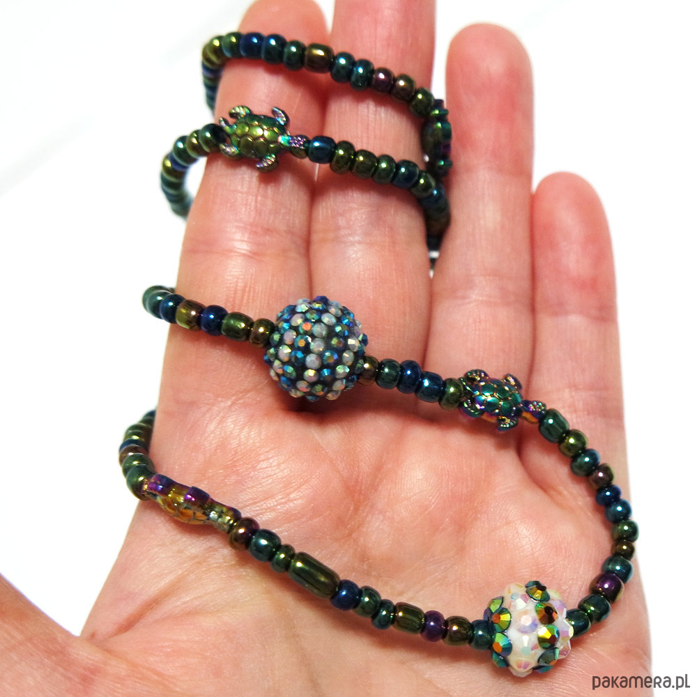 Oryginalny naszyjnik z przekładkami mini żółwikami ze stali.