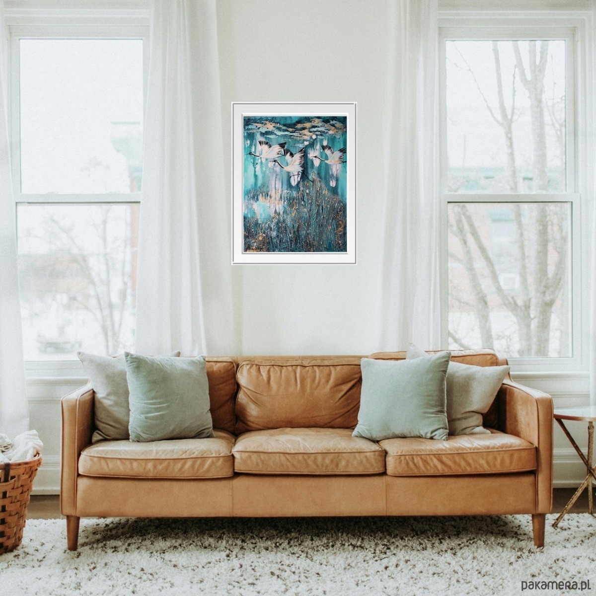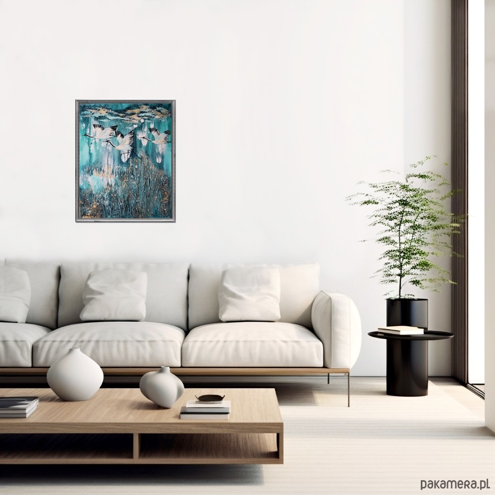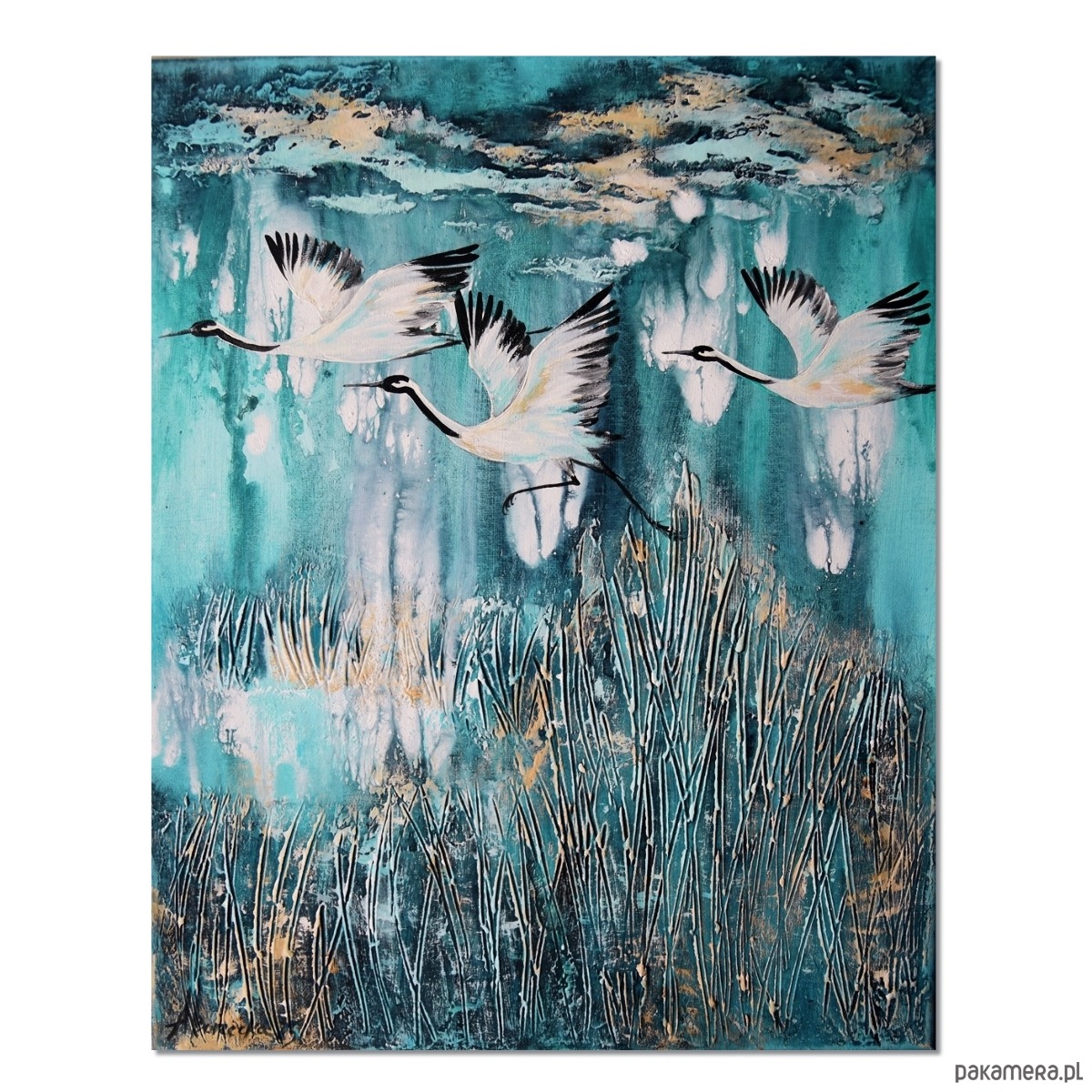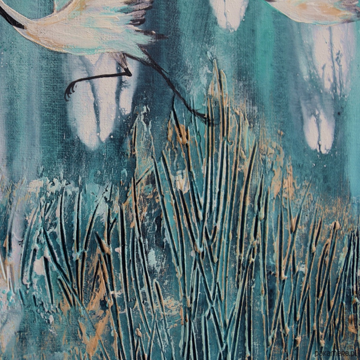 Żurawie 28 ptaki obraz do salonu malowany na płótnie