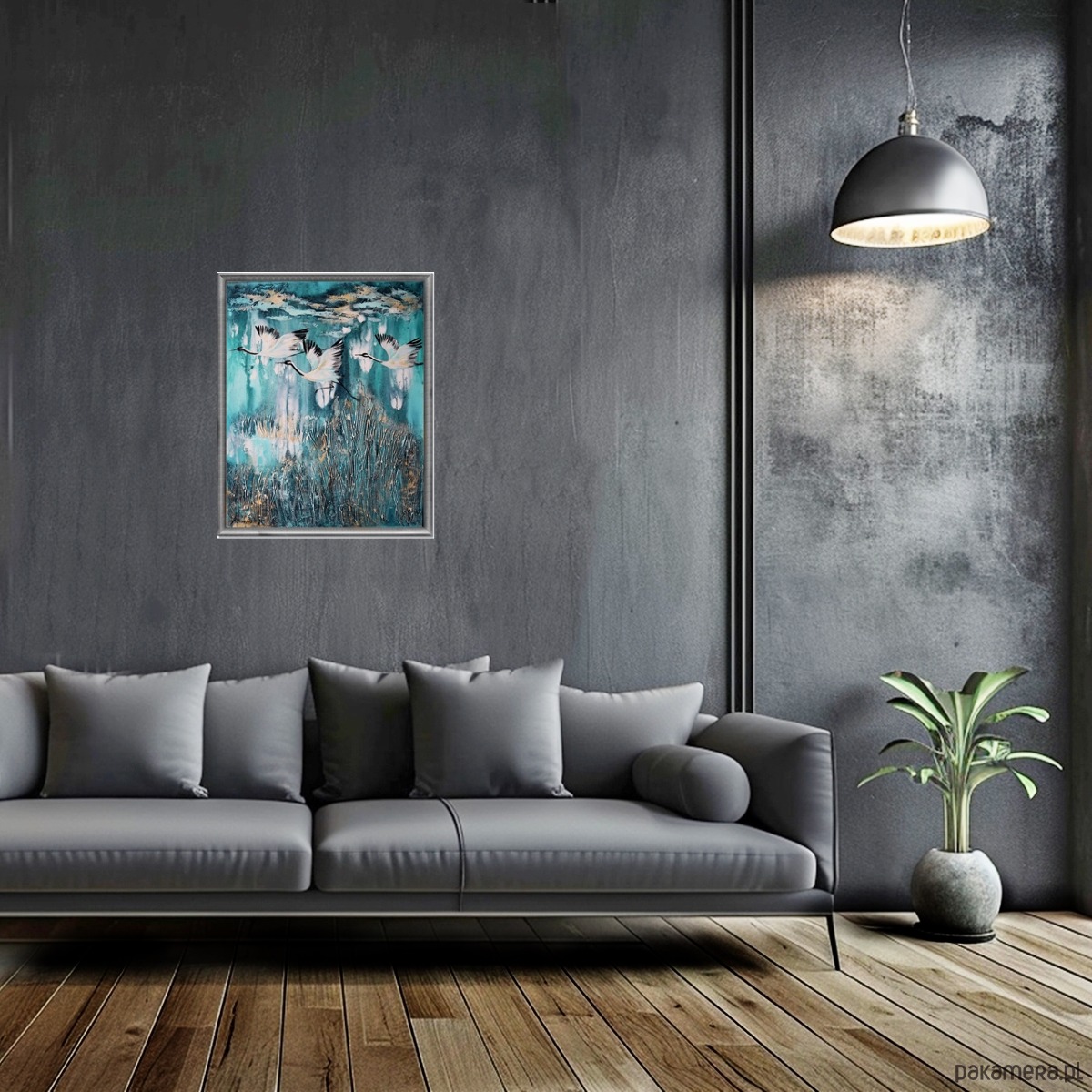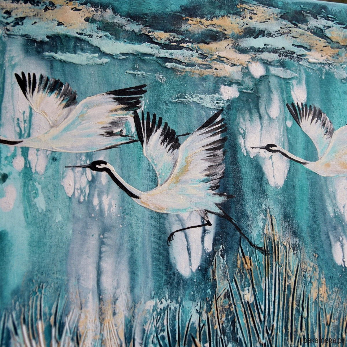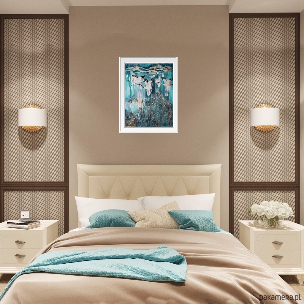 Żurawie 28 ptaki obraz do salonu malowany na płótnie