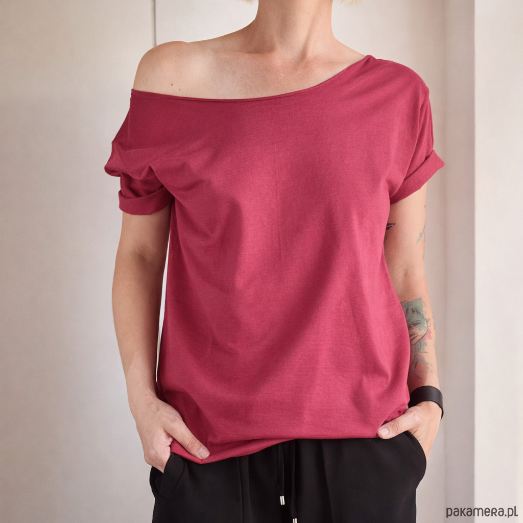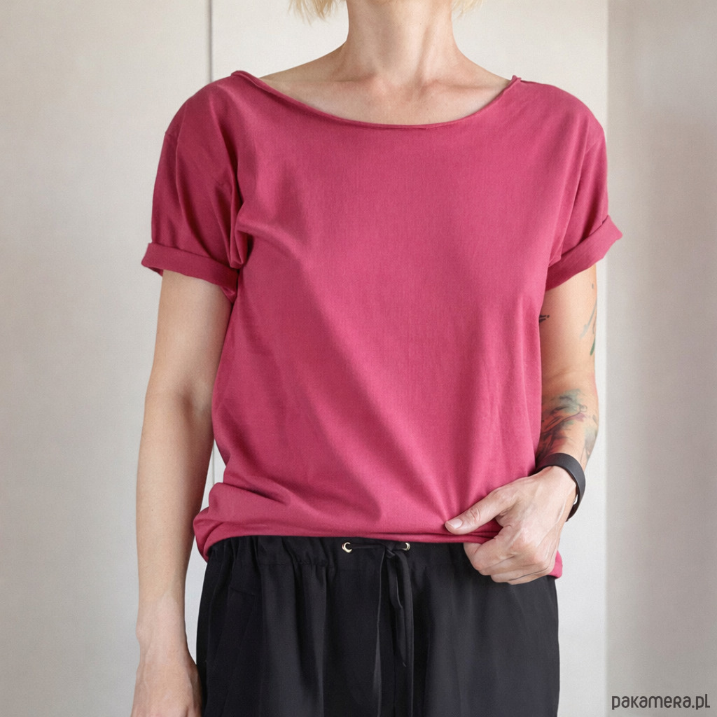 Gładki tshirt z ciętym dekoltem w odcieniu żurawiny :)