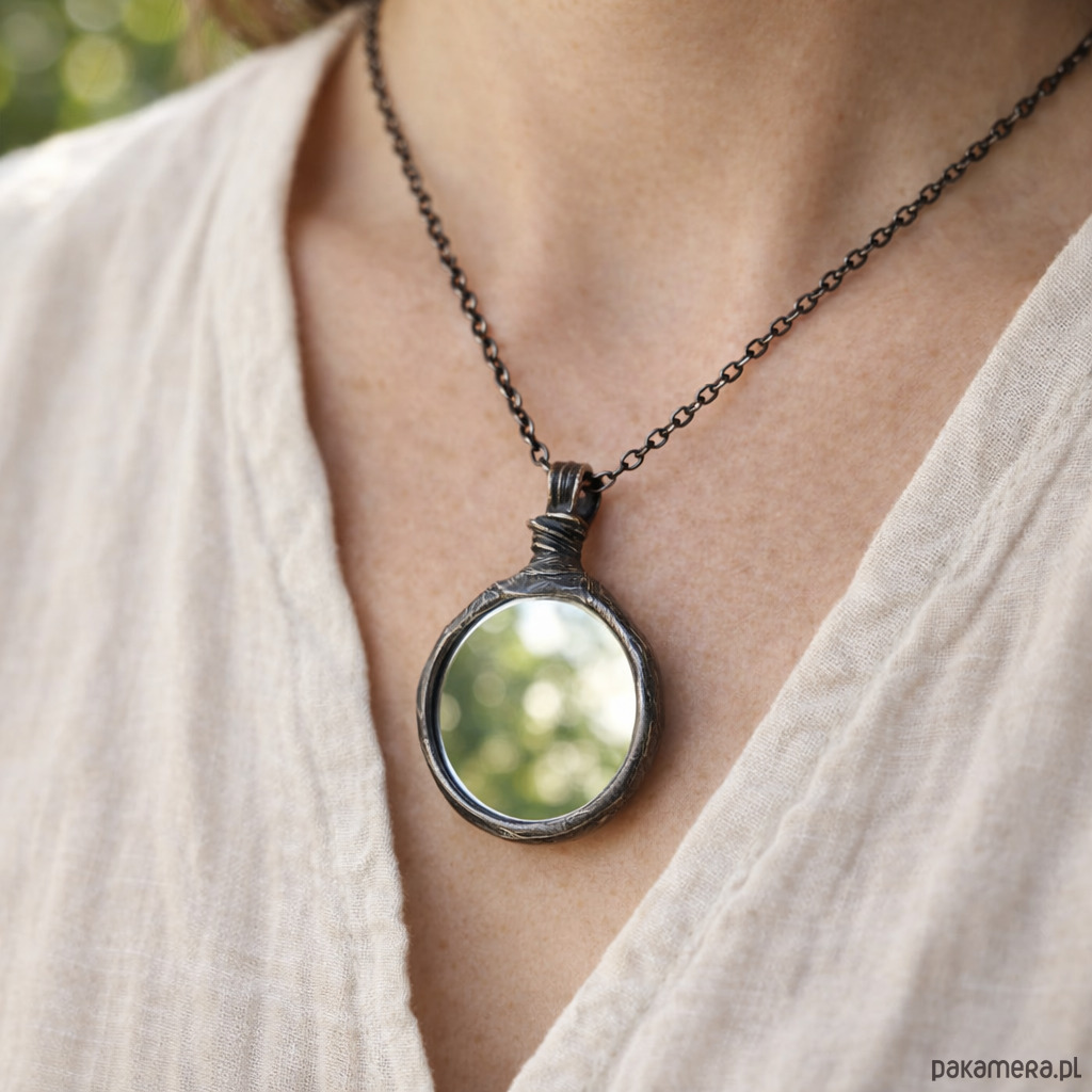 Naszyjnik z prawdziwym lusterkiem w artystycznej oprawie ✨