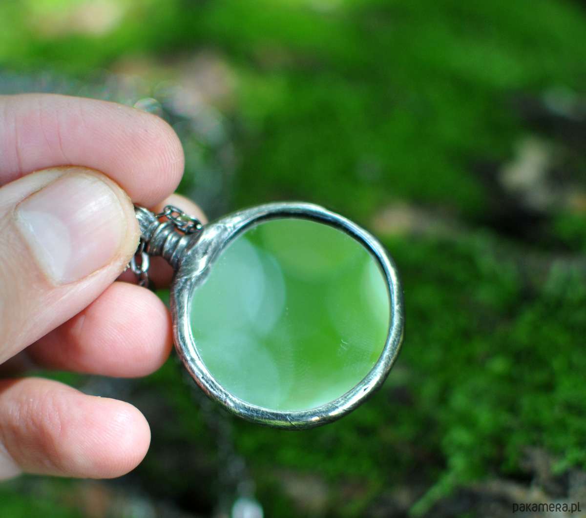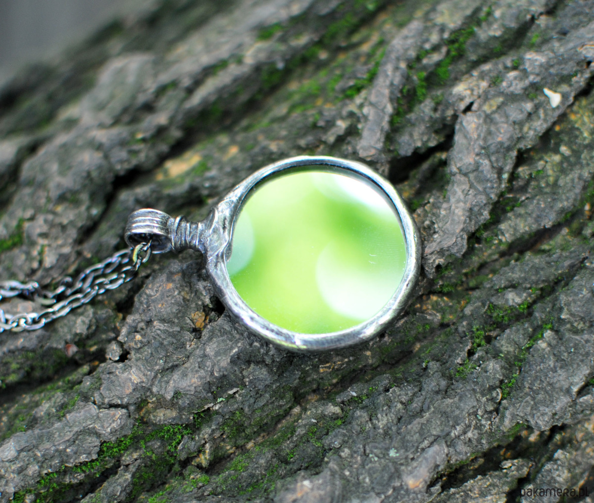 Unikalny naszyjnik z prawdziwym lusterkiem, oprawionym ręcznie w ramkę stylizowaną na stare srebro.