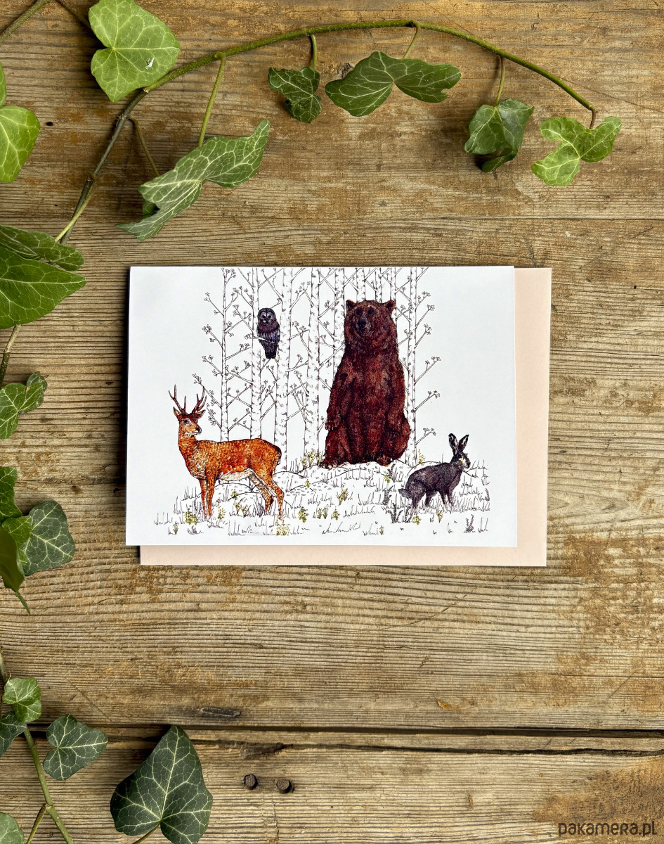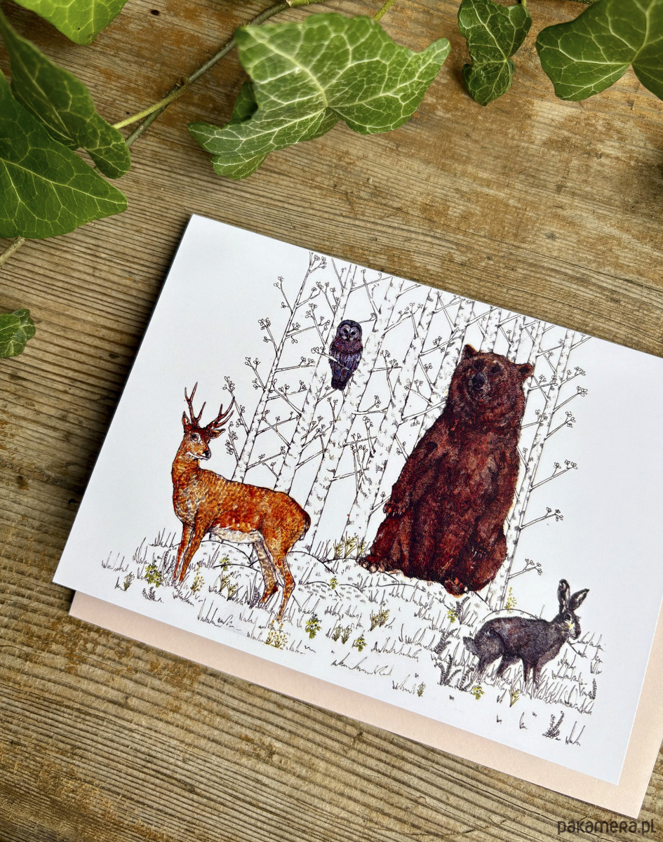 Zwierzaki leśne- Kartka- Grafika- Ilustracja- In woods