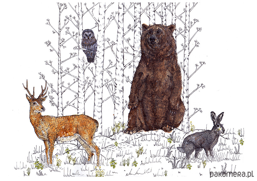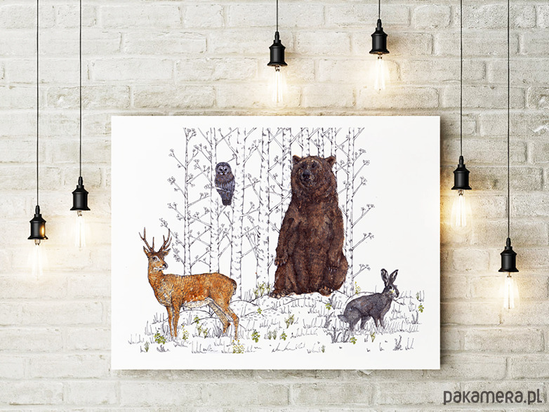 Zwierzęta leśne- wydruk autorskiej ilustracji inspirowanej światem rodzimej fauny oraz estetyką vintage