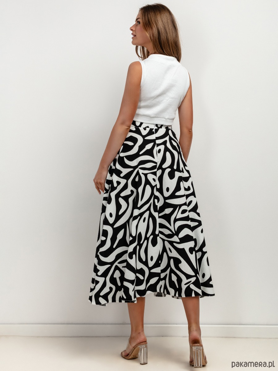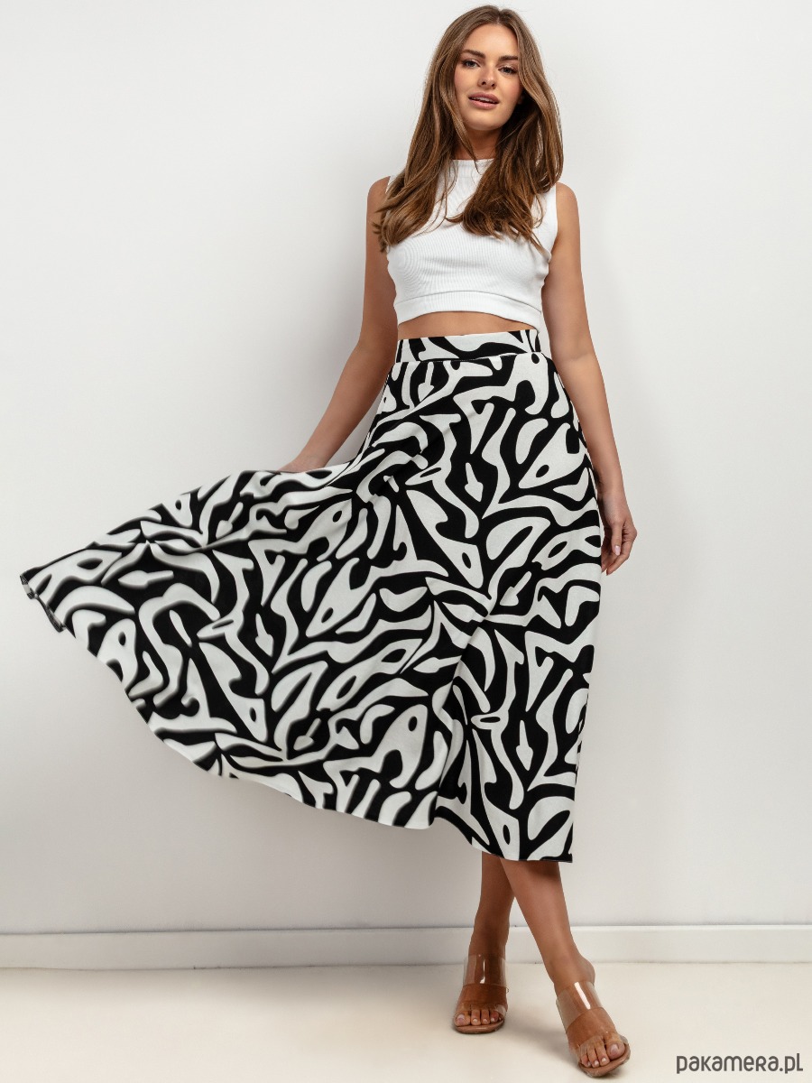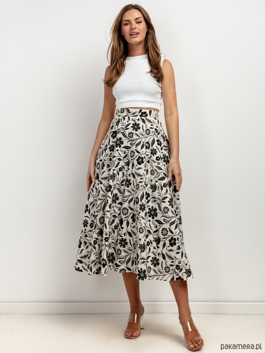 Zwiewna spódnica z lnem, T424, czarny kwiat