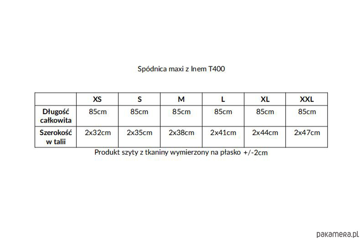 Nasza spódnica maxi z lnem T424 to idealny wybór na lato i gorące dni. Dzięki swojemu przewiewnemu materiałowi z 70% wiskozy i 30% lnu, zapewnia nie tylko stylowy wygląd, ale także komfort noszenia nawet podczas największych upałów. Jej długość dodaje elegancji, a luźny fason sprawia, że jest bardzo wygodna.