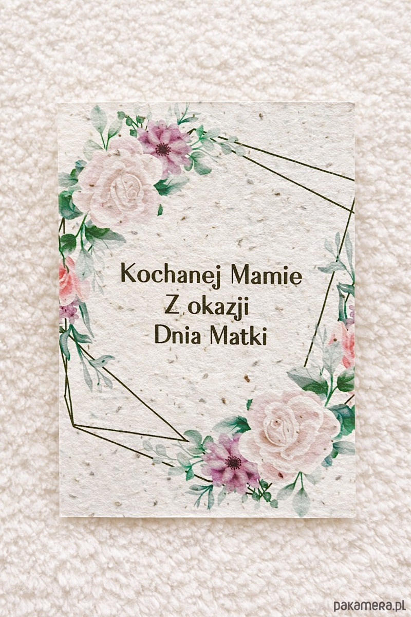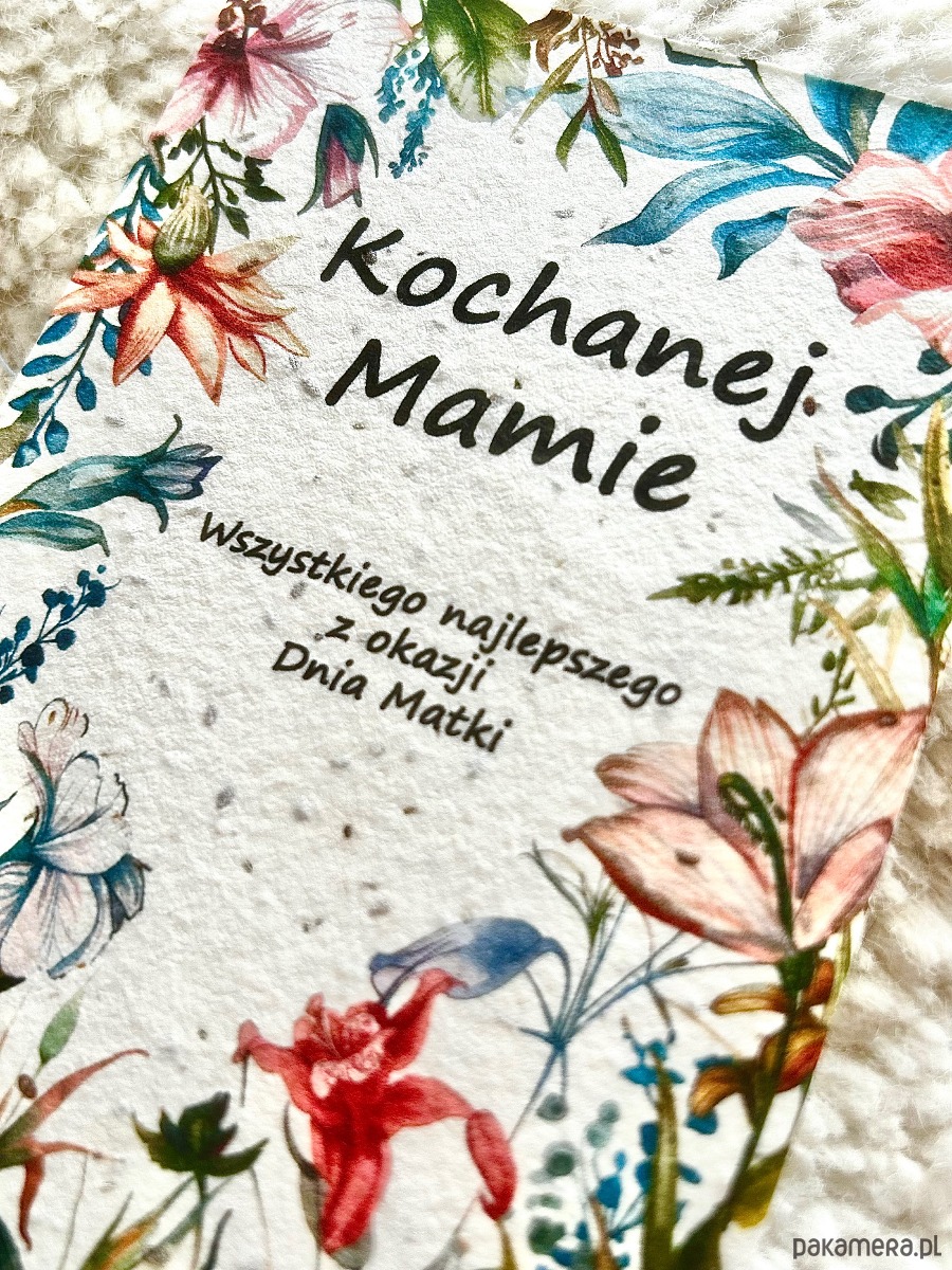 Kartka z nasionami kwiatów na Dzień Matki - papier czerpany