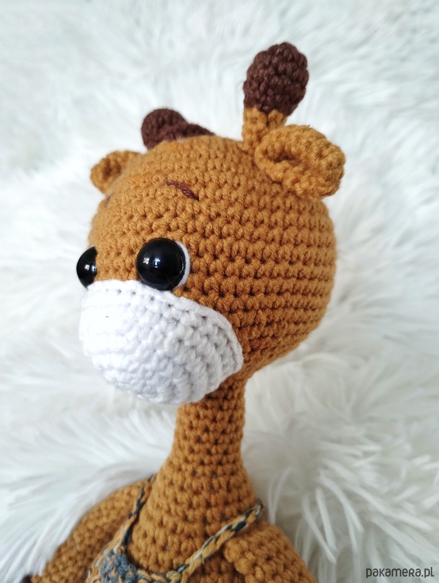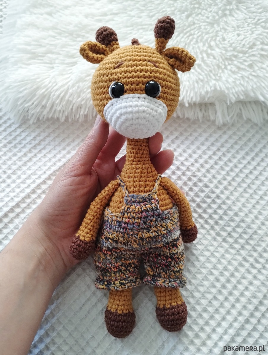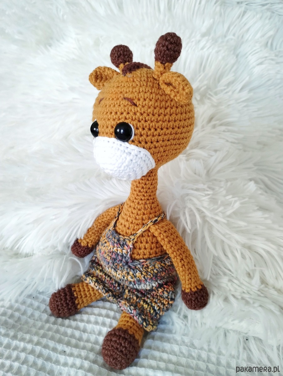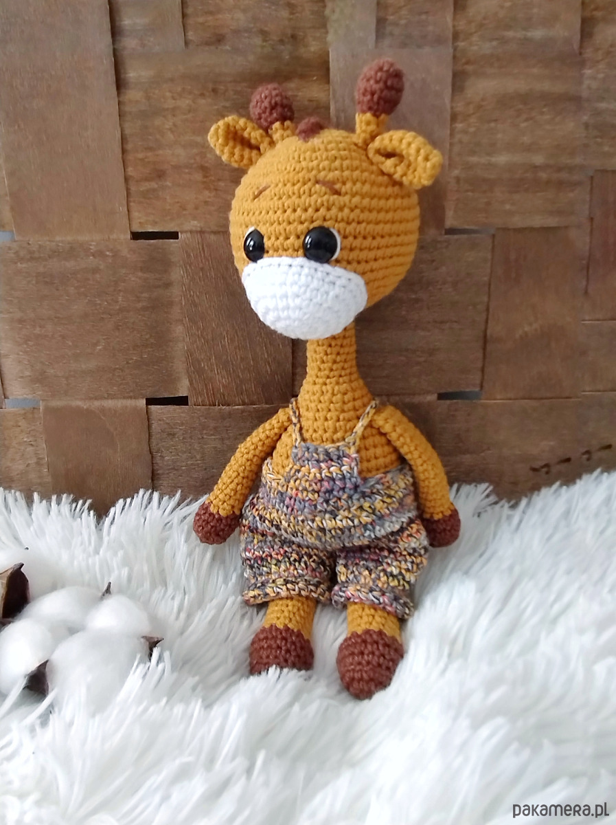 Szydełkowa żyrafa ze zdejmowanymi spodenkami to urocza zabawka dla każdego malucha.