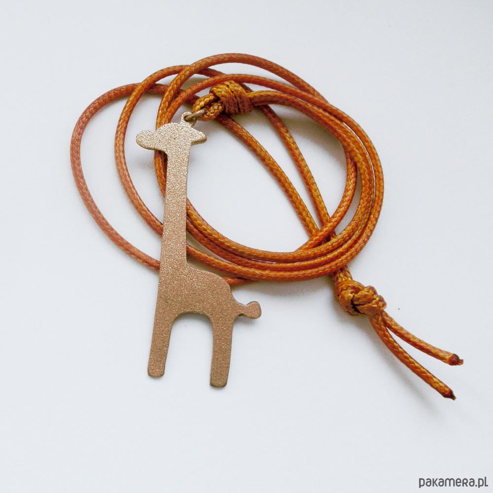 ŻYRAFA wisiorek- zabawny dodatek. Ciekawy dodatek przykuwają uwagę i zaskakuje wzornictwem. Taki wisiorek sprawi, że każda stylizacja nabierze niepowtarzalnego, fantazyjnego charakteru. Wisiorek wykonany są z: brąz, ozdobny sznurek. Brąz - zmatowiony. Długość zawieszki - ok. 5 cm. Szerokość ok. - 2,5 cm.