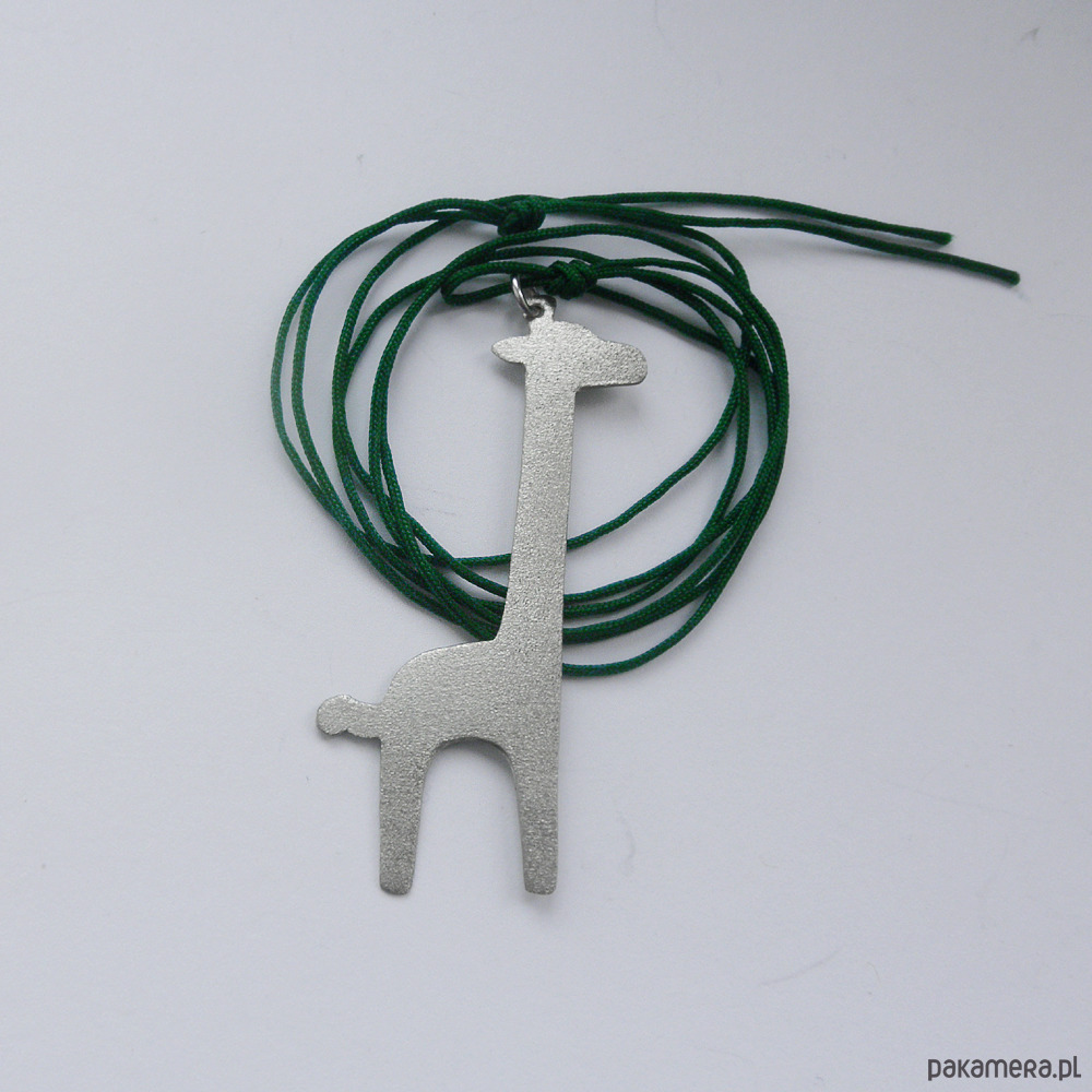 ŻYRAFA wisiorek- zabawny dodatek. Ciekawy dodatek przykuwają uwagę i zaskakuje wzornictwem. Taki wisiorek sprawi, że każda stylizacja nabierze niepowtarzalnego, fantazyjnego charakteru. Wisiorek wykonany są z: alpaka, ozdobny sznurek. Alpaka - zmatowiona. Długość zawieszki - ok. 5 cm. Szerokość ok. - 2,5 cm.