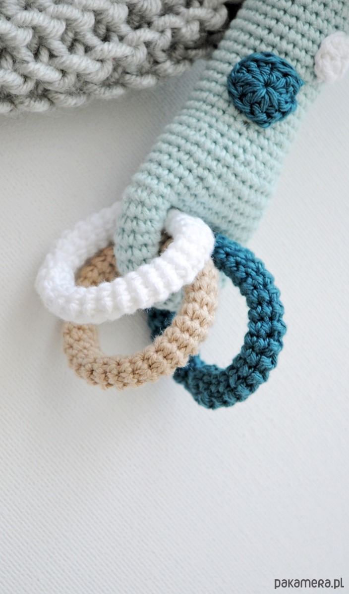 Miętowa żyrafka może posłużyć jako oryginalny prezent dla maluszka i jego rodziców, ozdoba na babyshower lub dekoracja pokoju dziecięcego.