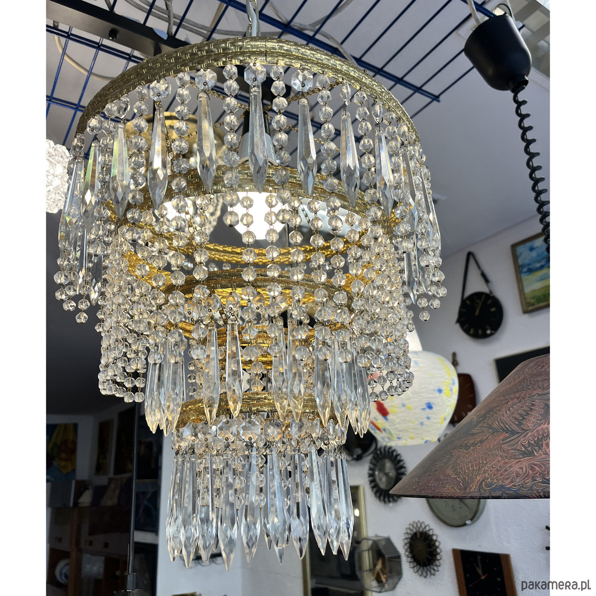 Elegancki żyrandol wyprodukowany w słynnych zakładach Železnobrodské Sklo w Czechosłowacji w latach 70. XX wieku.