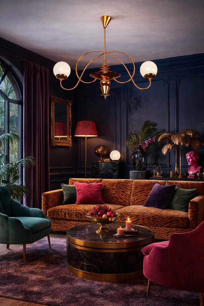 Szklane klosze subtelnie rozpraszają światło, tworząc miękki i przyjemny klimat we wnętrzu. Żyrandol doskonale sprawdzi się nad stołem w jadalni, w salonie, sypialni lub w aranżacjach w stylu vintage, retro, mid-century, boho czy modern classic.