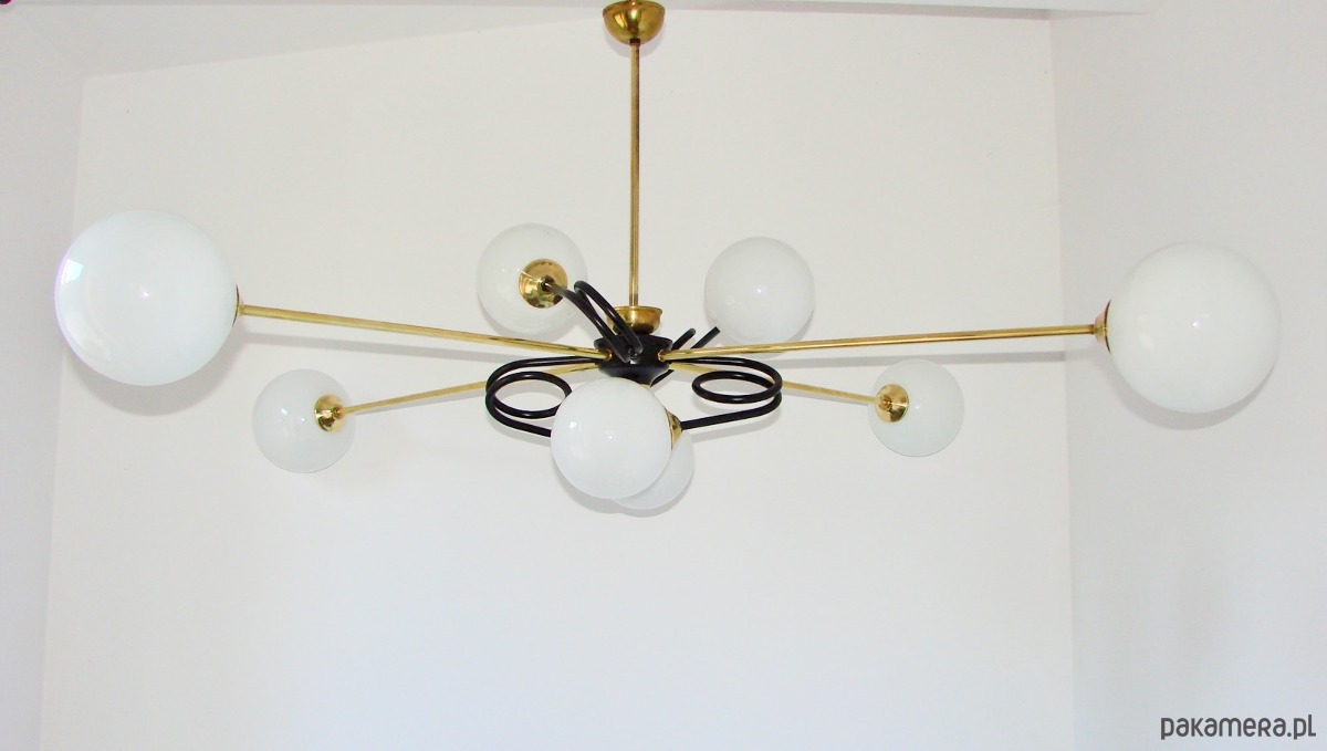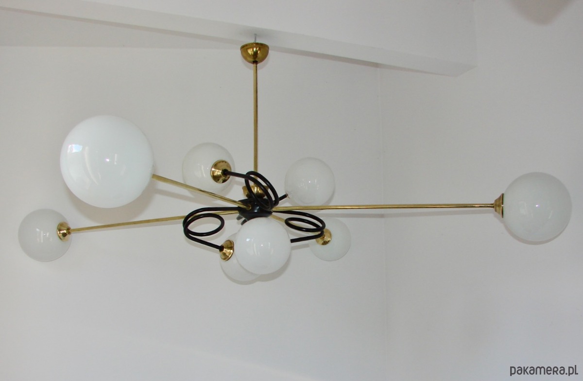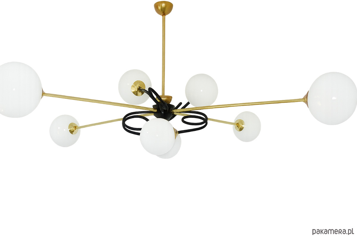 Osiem szklanych kul rozmieszczonych na smukłych ramionach tworzy harmonijną kompozycję, która doskonale dopełni zarówno klasyczne, jak i nowoczesne wnętrze.