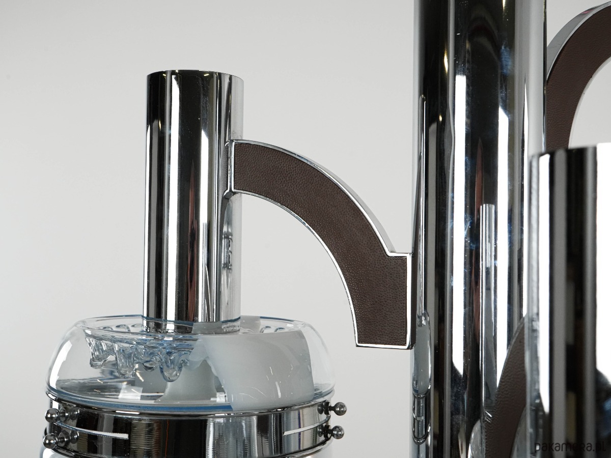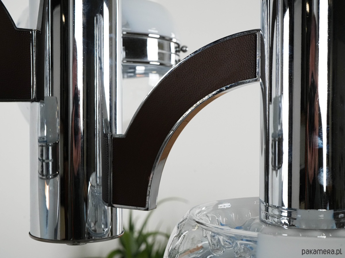 Wykonana z metalu i szkła. Unikatowa konstrukcja jest nie tylko elementem designu, jej głównym założeniem jest rozproszenie światła w celu stworzenia przyjemnego nastroju wnętrza.