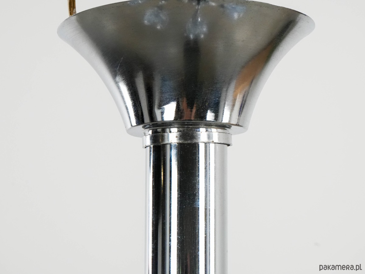 Stan: Żyrandol zachowany w oryginalnym stanie z widocznymi normalnymi śladami użytkowania (drobne zarysowania). Przewód oryginalny. Wszystkie lampy są przez nas sprawdzone pod względem sprawności elektryki.